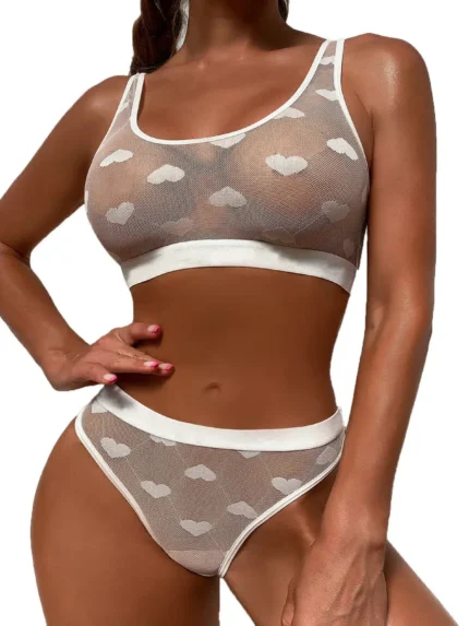 Sheer Heart Mesh Lingerie Set