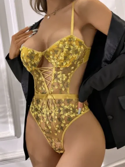 Floral Lace Mesh Teddy Lingerie