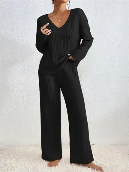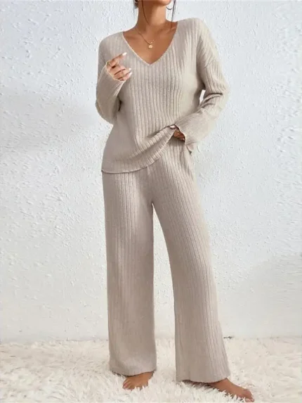 Women’s Loungewear Sets V Wire Long Sleeve Sweater Pants Fall Winter