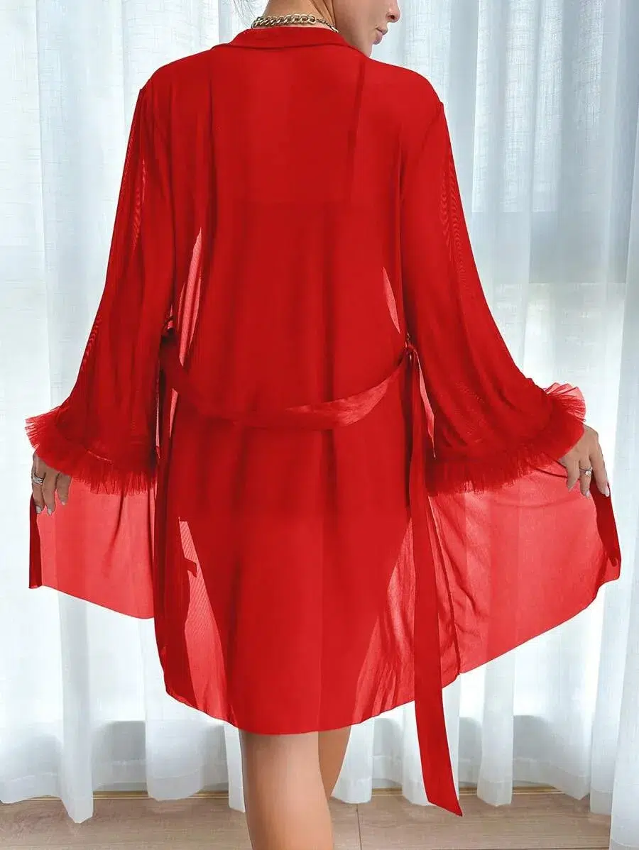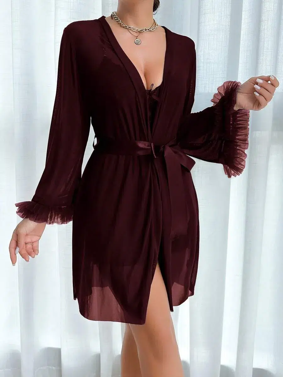 Floral Lace Split Mesh Gown Set – Elegant Two-Piece Nightdress
