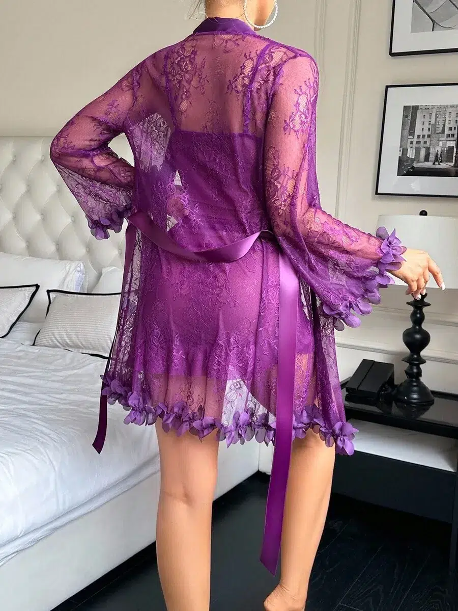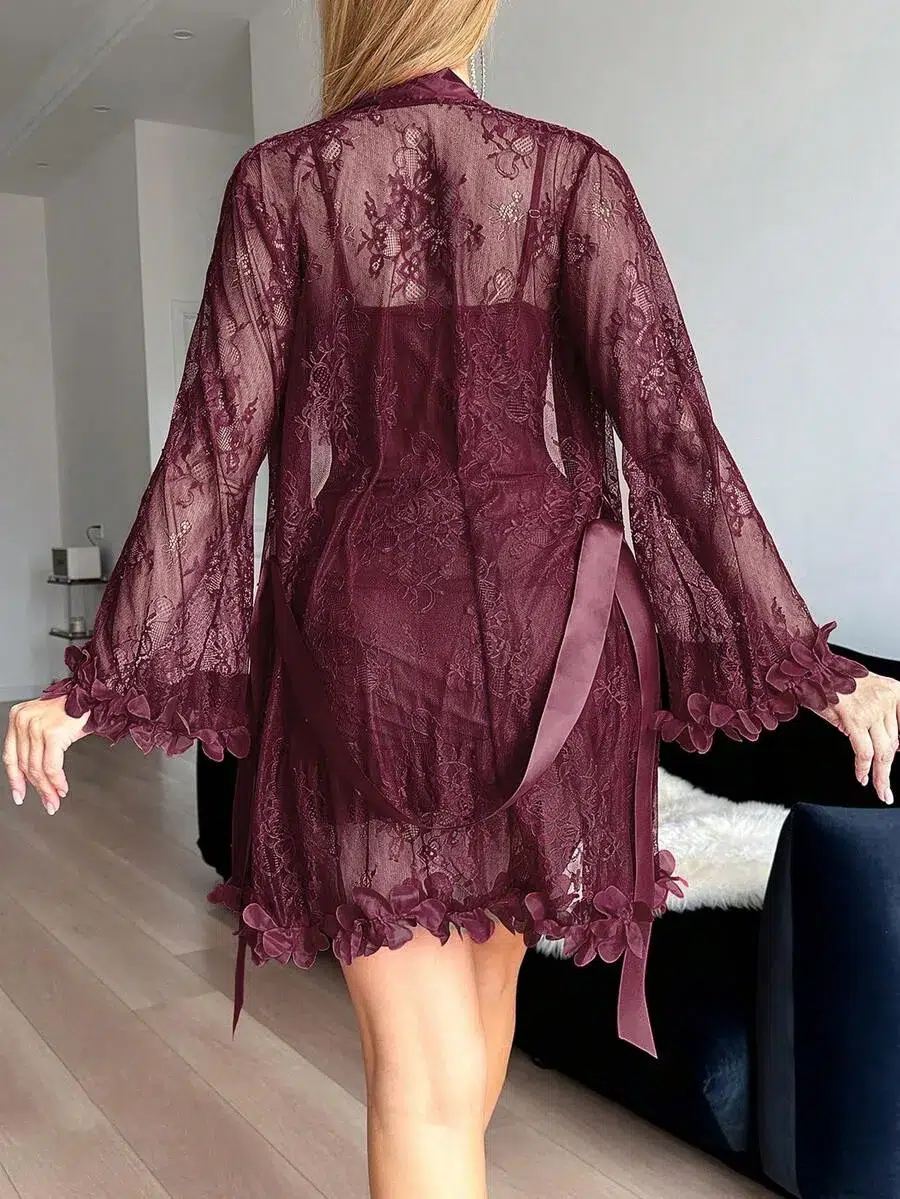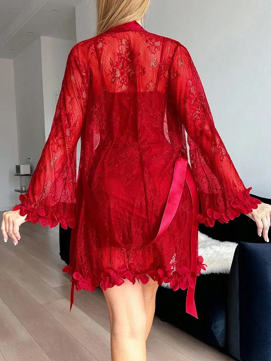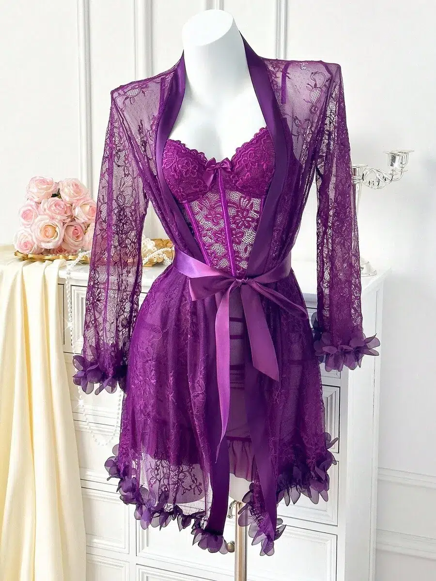 Sexy Lace Patchwork Corset Lingerie Set With Ribbon Tie Design