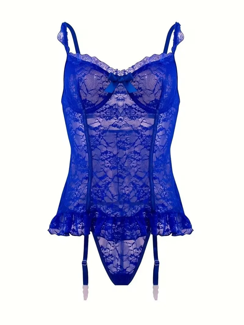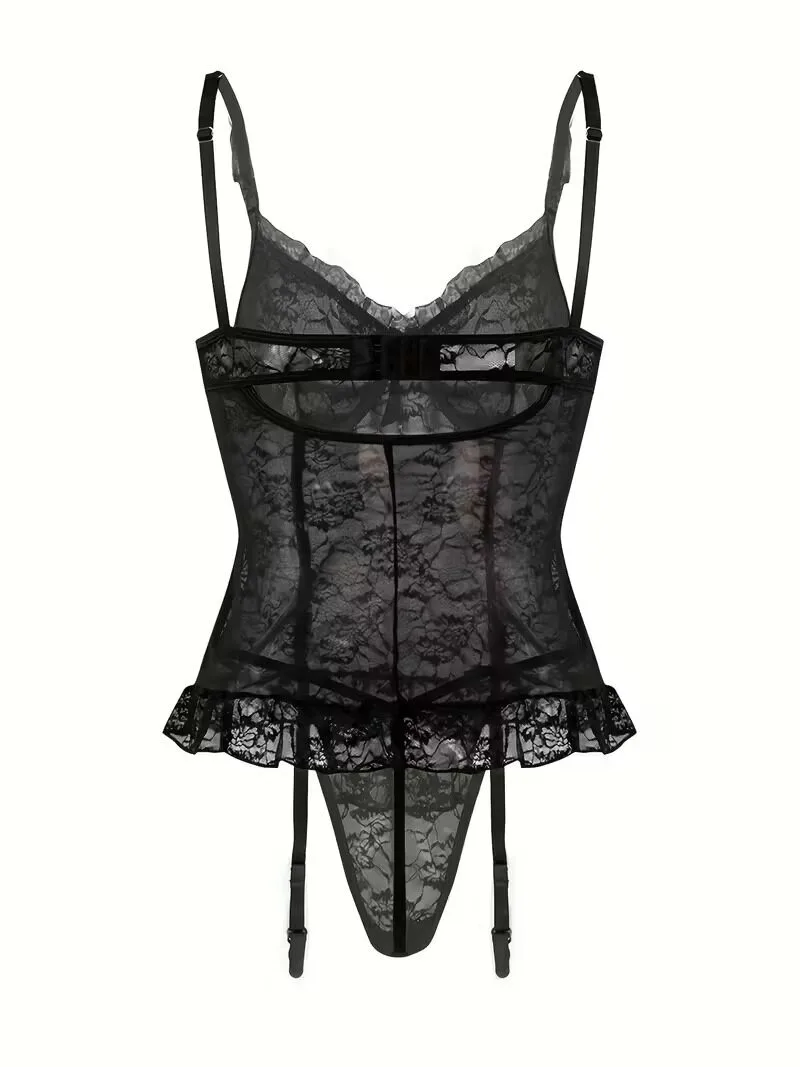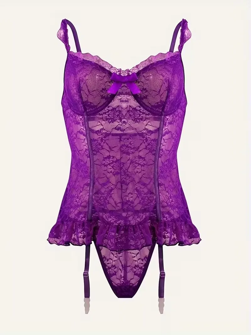 Sexy Floral Lace Trim Open Bust Crotchless Teddy Lingerie