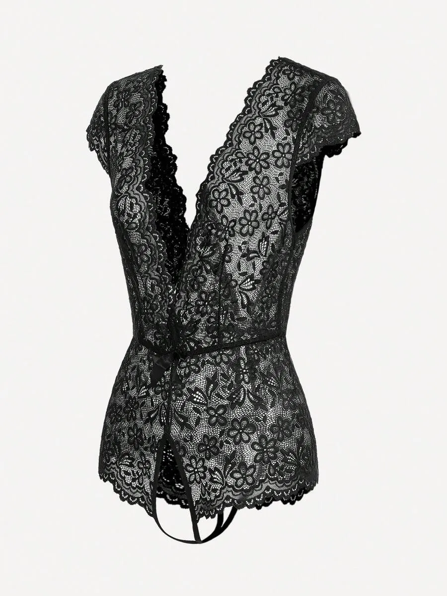 Sexy Red Lace Christmas Teddy Bodysuit with Padded Cups