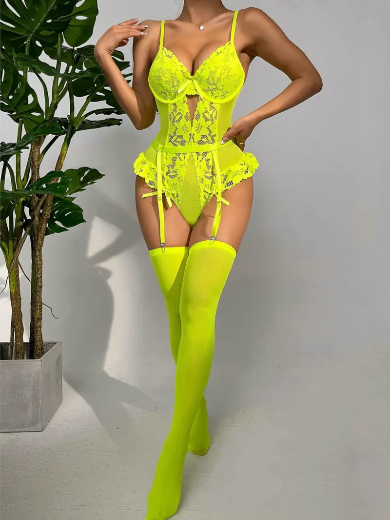 Leopard Print Lace Trim Split Front Lingerie Dress Set