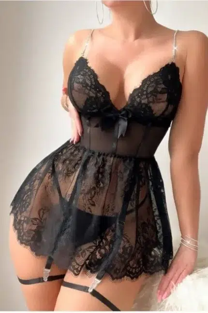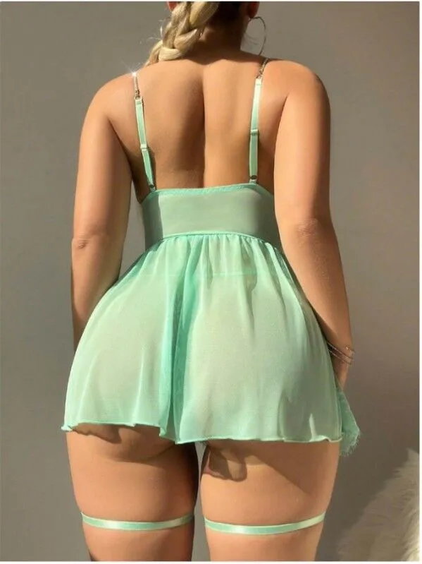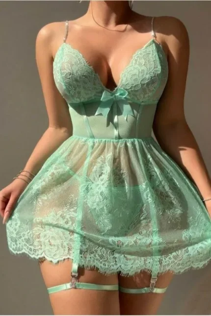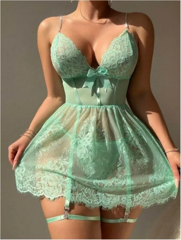 Sexy Floral Embroidered Mesh Bustier Lingerie Set with Garter Straps