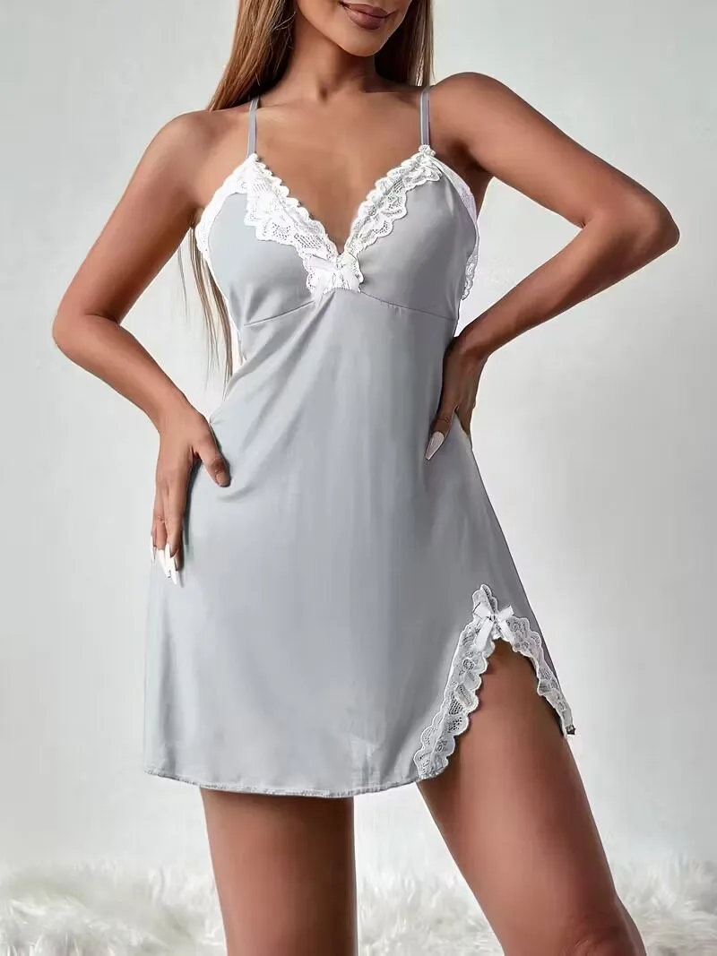 Lace Trim Hip-Hugging Side Slit Chemise Nightgown