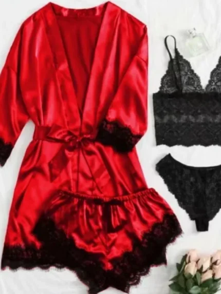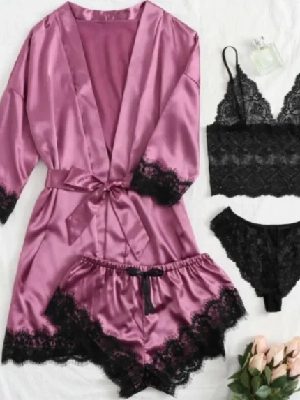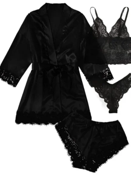 5-Piece Sheer Floral Lace Bra & Panty Sexy Lingerie Set With Garter Belt