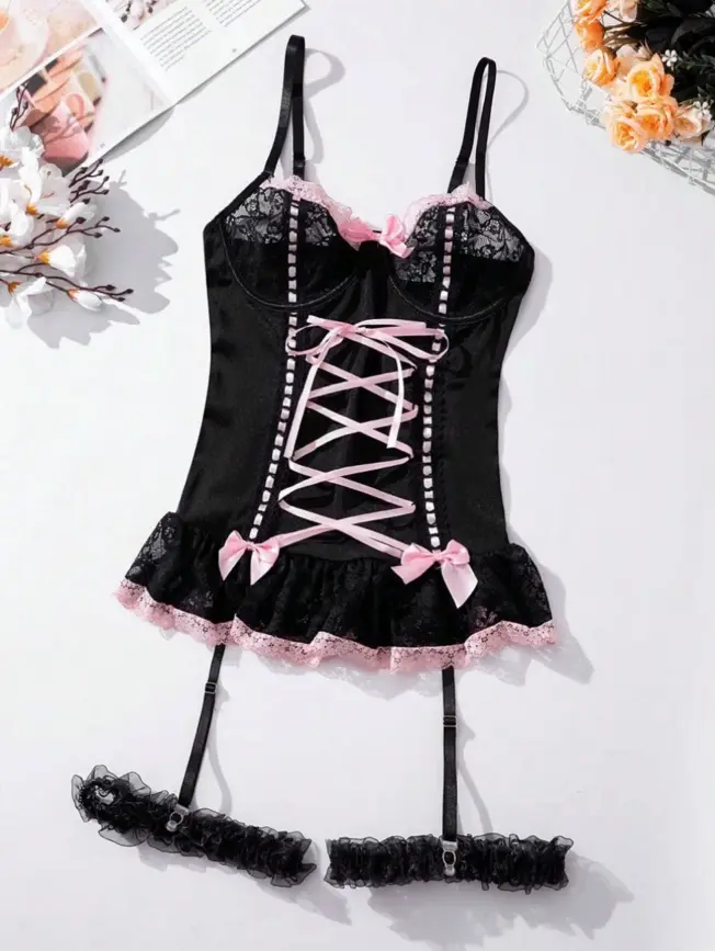 3D Floral Lace Robe & Boned Waist Camisole Nightgown Set