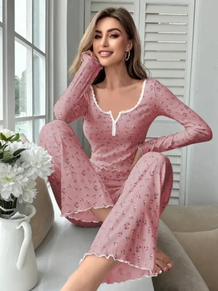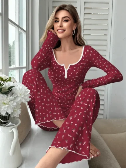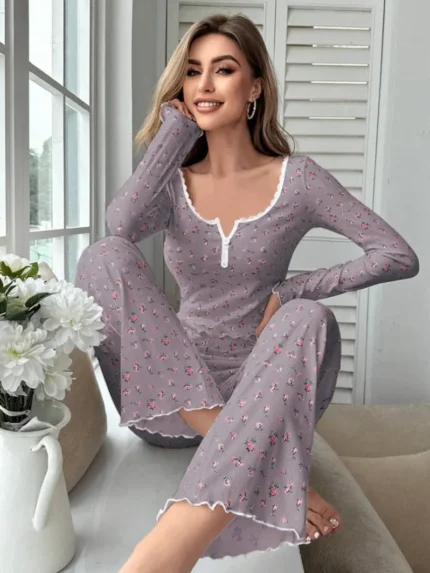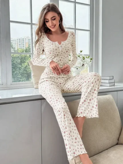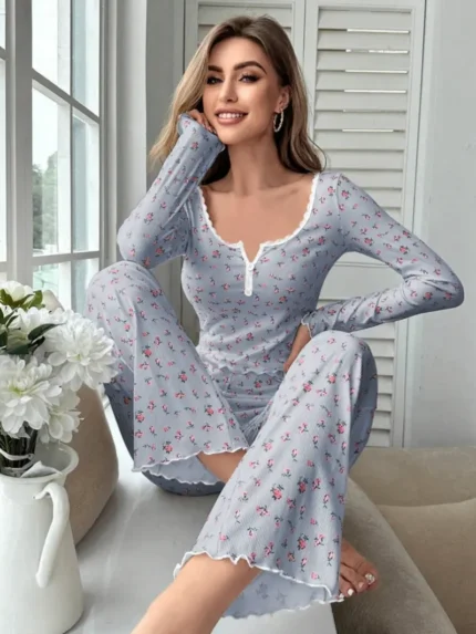 Be the first to review “Two-Piece Floral Print Long Sleeve & Pants Pajama Set”