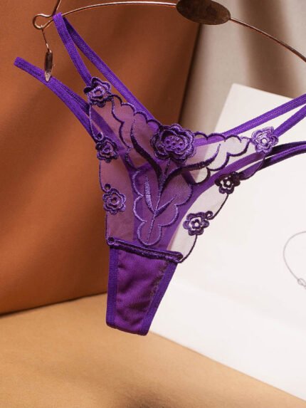 Sexy & Cute Floral Printed Off Shoulder Sheer Sleep Dress (With Thong)