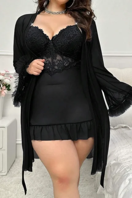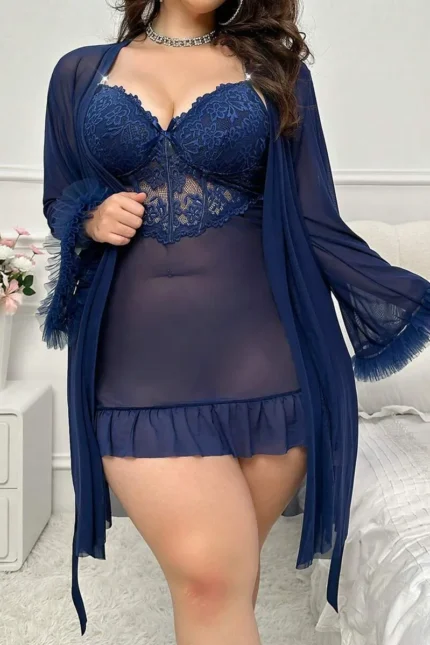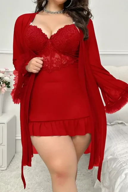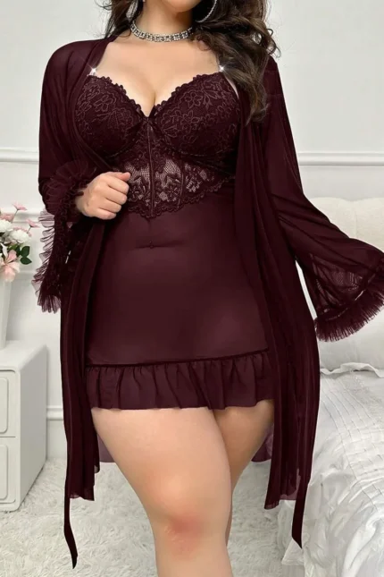 Sexy & Cute Floral Printed Off Shoulder Sheer Sleep Dress (With Thong)